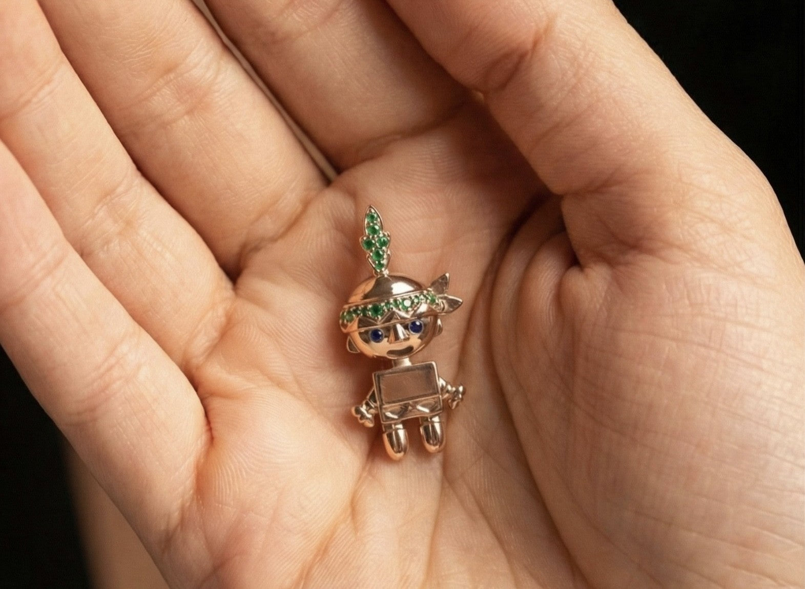 Personalize the eyes with Sapphire stones and select the crown or chain holder from Ruby, Emerald, Sapphire, or Diamond.